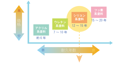 A.価格と耐久年数のバランスが良く、遮熱機能のあるものや、高耐候性のもの、艶やカラーバリエーションも豊富なシリコン系塗料がおすすめです。